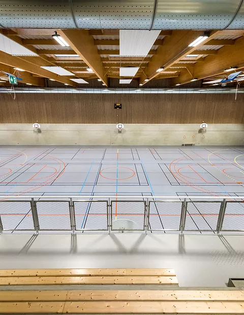 - ✔ Des annexes sportives (vestiaires, douches, infirmerie), locaux publics (hall d’accueil, salle de réunion)